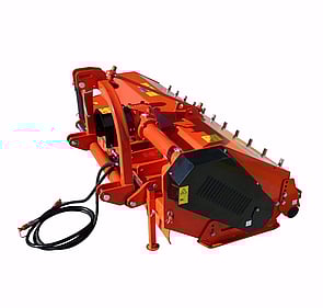 The European designed COSMO SFM-H Series Mulchers have a gearbox rating up to 70hp. The gearbox has been fitted with a built-in freewheel which allows the rotor to slowly spin to a stop in the event that the PTO power is shut off while the PTO input is at speed. The tower of the SFM-H is hydraulically side shifting (up to 300mm), allowing the operator to shift the mulcher in and out to the side. This control is beneficial when mulching along fence lines or under tree branches and vines. The rear of the deck has a series of removable, height adjustable mulching rakes that hold large pruning's (up to Ø 50mm) in the cutting chamber for maximum mulching, which along with the high-speed rotor, four belt drive and hammer blades produce a high-quality cut finish in vineyards, orchards and pastures.