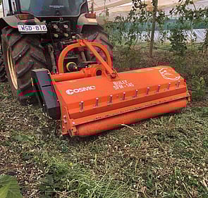 The European designed COSMO SFM-M Series Mulcher is specifically designed for tractors 30 to 70hp. The rear of the deck has a series of height-adjustable mulching rakes that hold large pruning's (up to Ø 50mm) in the cutting chamber for maximum mulching. This results in a high-quality cut in vineyards, orchards and pastures. The fixed, bolt-on tower has three mounting positions, 150mm apart, to enable the operator to offset the mulcher