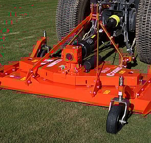 The Cosmo SGM finishing mowers are designed to groom lawn and grass areas professionally. Three (3) suction type blades turn at a high tip speed giving tender grass a fine sharp cut. Four (4( solid swivel wheels allow the mower to follow the contour of the ground resulting in a precise and level cut in undulating conditions. Cutting height can be adjusted by adding or removing spacers on the caster wheel shafts and an anti-scalping roller is standard. Attached to the back of a 25-60hp tractor, the SGM finishing mower works efficiently to mow and maintain areas like private lawns, parks, hospital grounds, schools and gold courses.