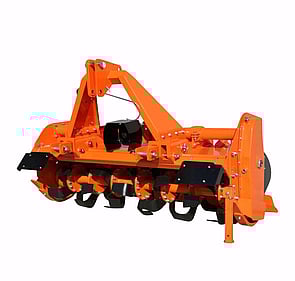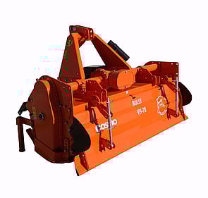 The Cosmo VH Series Rotary Hoe is a gear driven implement engineered in Europe for tractors 50 to 90hp. It is fitted with a multispeed gearbox that allows the operator to customize the input speed (540/1000rpm) and the blade tip speed. The main frame is a robust and rigid construction with box section reinforcing for the category 2/3 lower linkage mounting points. Square/L blades are mounted in a six blades per flange configuration. This design, where the blades are slightly staggered from flange to flange, prevents the worked soil from clogging the chamber, reduces blade impact, horsepower requirements and the number of passes required to produce a fine finish in a variety of soil conditions. The VH Rotary Hoe produces a super fine finish, with the spring-loaded tailgate keeping soil inside the chamber and in contact with the blades until it is well pulverized. Capable of operating all day, every day, in demanding soil conditions the VH Rotary Hoe is perfect for a range of commercial agricultural and horticultural applications